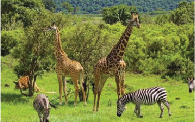 Mikumi National Park abuts the northern border of Africa's biggest game reserve - the Selous – and is transected by the surfaced road between Dar es Salaam and Iringa. It is thus the most accessible part of a 75,000 square kilometre (47,000 square mile) tract of wilderness that stretches east almost as far as the Indian Ocean. The open horizons and abundant wildlife of the Mkata Floodplain, the popular centrepiece of Mikumi, draw frequent comparisons to the more famous Serengeti Plains. Lions survey their grassy kingdom – and the zebra, wildebeest, impala and buffalo herds that migrate across it – from the flattened tops of termite mounds, or sometimes, during the rains, from perches high in the trees. Giraffes forage in the isolated acacia stands that fringe the Mkata River, islets of shade favoured also by Mikumi's elephants..